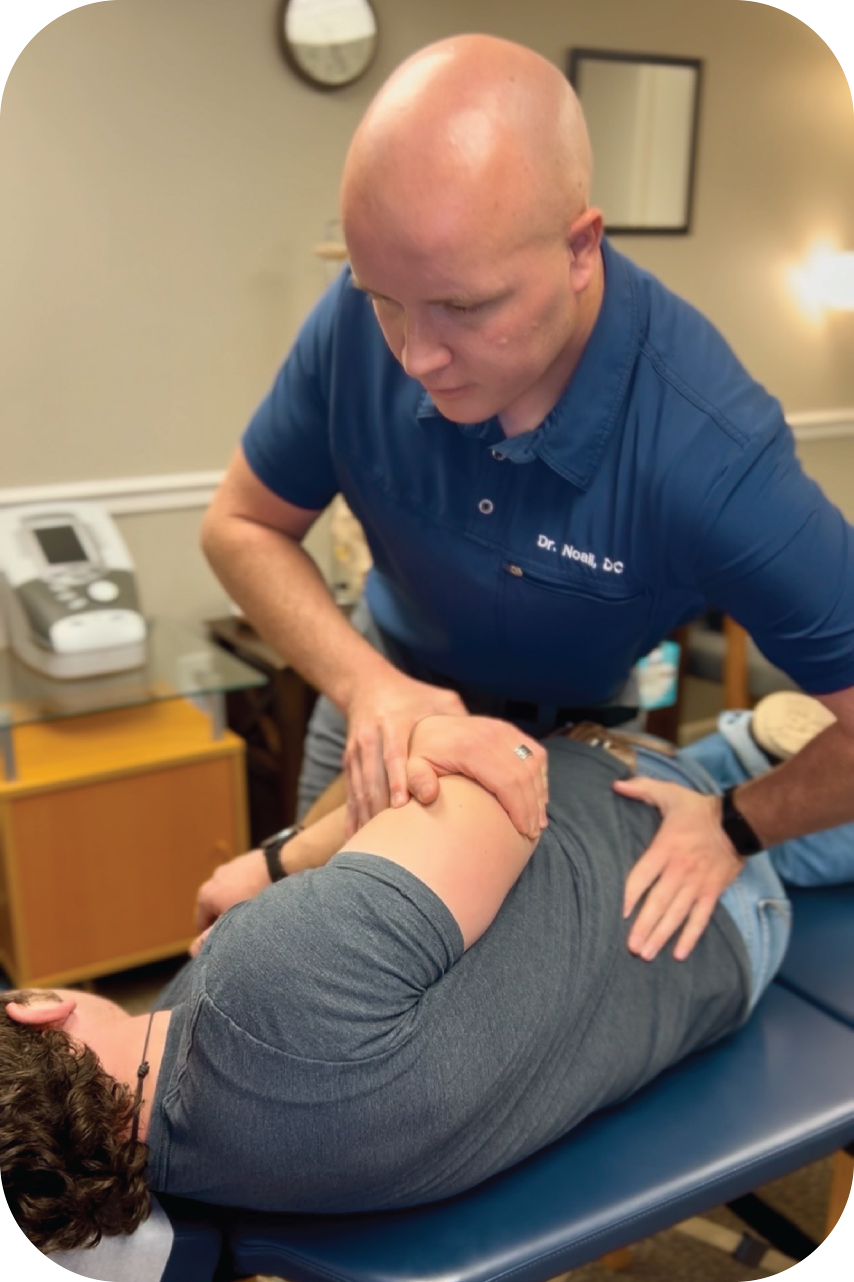 He graduated from Utah State with a BS in Kinesiology with an emphasis is Exercise Science. Then attended Logan University in St. Louis, where he graduated Summa Cum Laude with his Doctor of Chiropractic degree. Dr. Noall is board certified in acupuncture, and has received additional certifications in dry needling, natural injections, and advanced myofascial therapies.